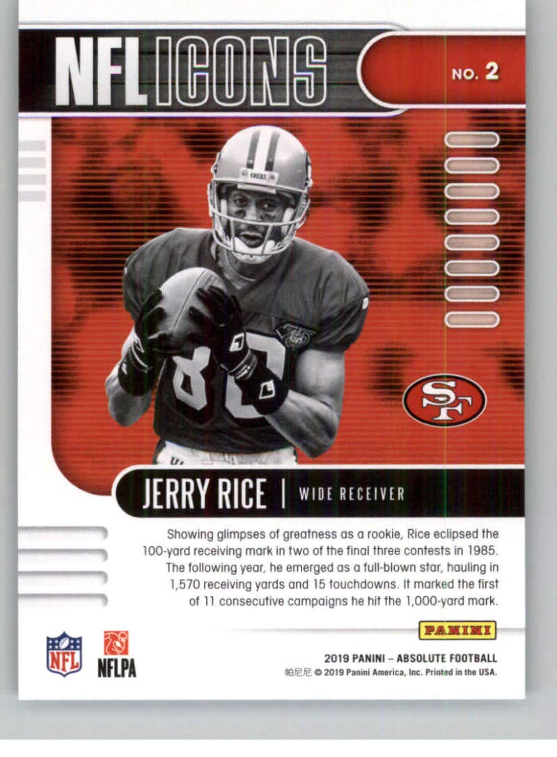 Amazon Com 2019 Absolute Nfl Nfl Icons 2 Jerry Rice San Francisco 49ers Official Panini Football Trading Card From Retail Packs Collectibles Fine Art